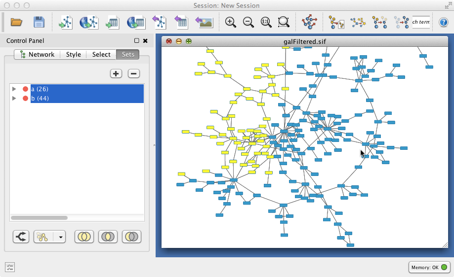 SetsApp is a Cytoscape 3 app allowing the user to create and manipulate sets of nodes or edges (but not sets with both nodes and edges, at least in the current version) in Cytoscape. Sets can be created for different networks.